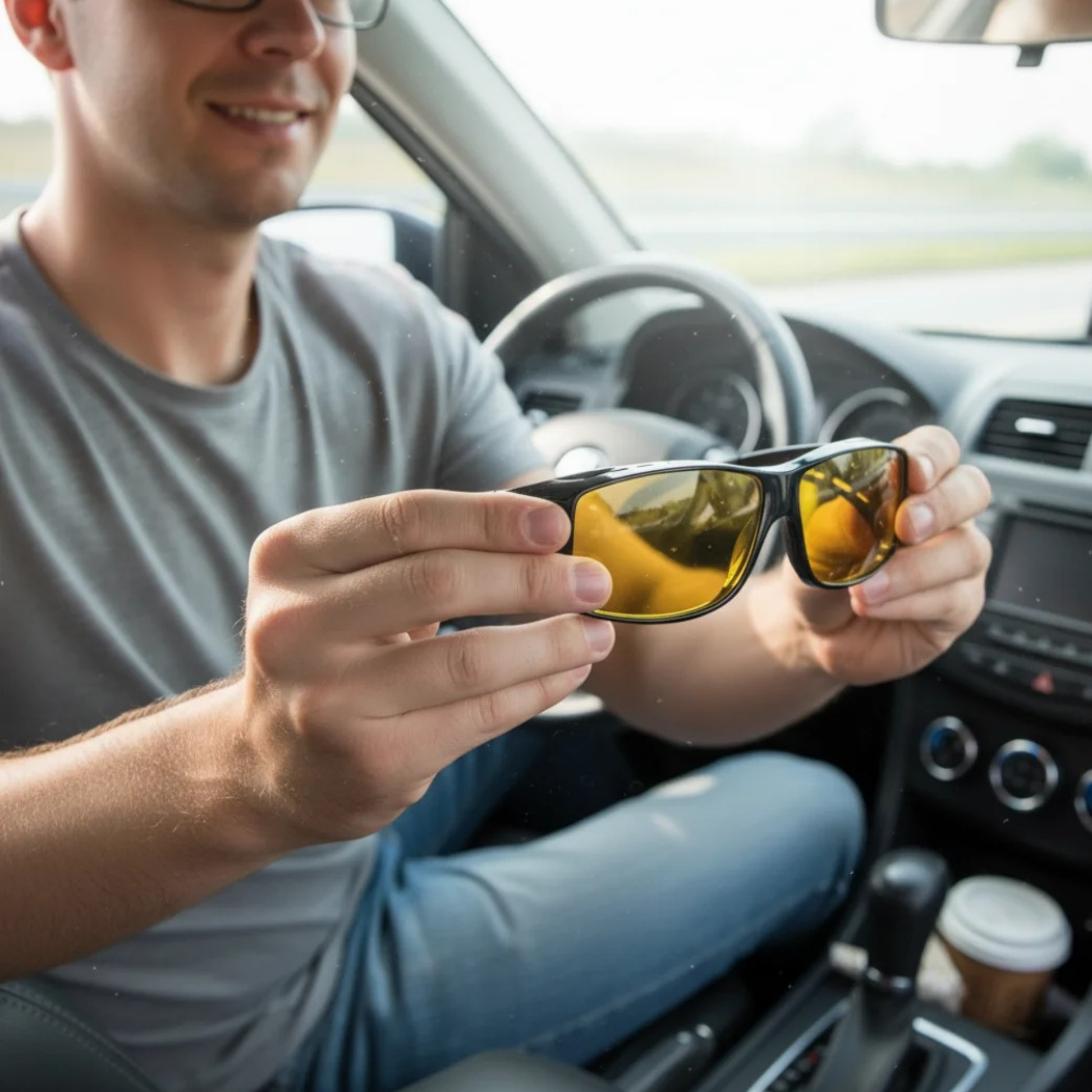Numaralı gözlüklerin üzerine kolayca takılır, pratik ve konforludur. Daha net görüş, daha az göz yorgunluğu ve daha stressiz bir sürüş için POLUMRA yanında. 🚗